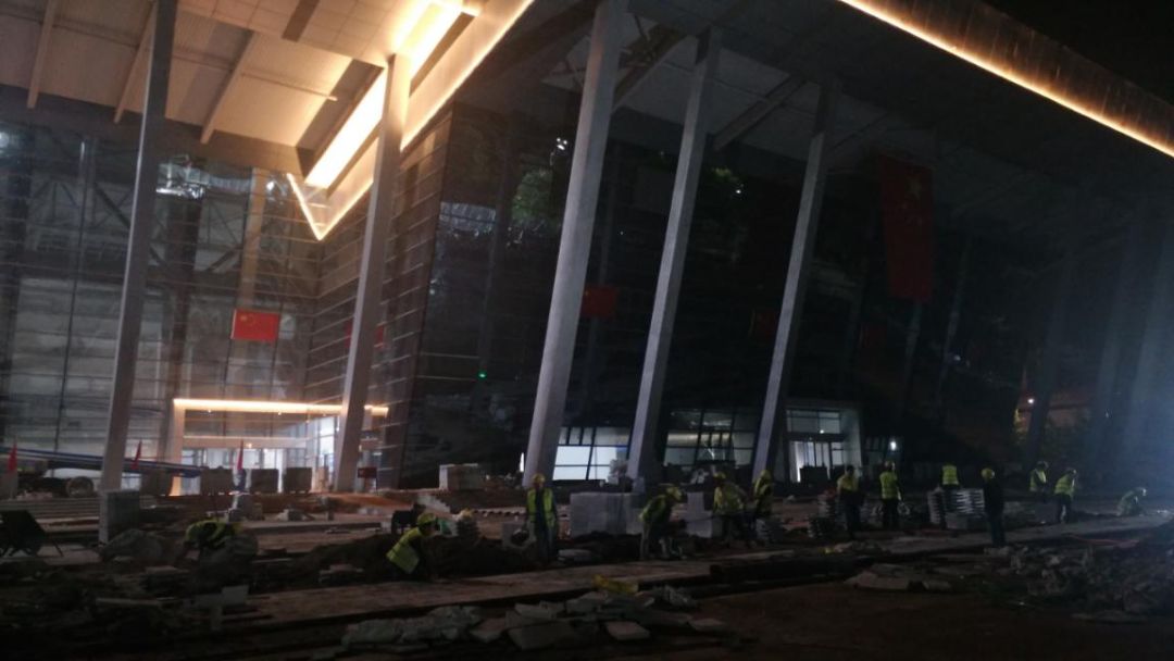 據(jù)農(nóng)高會D館城投方現(xiàn)場負(fù)責(zé)人趙永輝介紹,目前整個工程已進(jìn)入收尾階段,計劃10月5日完工,為客商10月6日進(jìn)場布展做好前期鋪墊。從9月28日開始,現(xiàn)場施工進(jìn)行“三班倒”,每個班工人人數(shù)增加到600名?,F(xiàn)在D館整體效果已呈現(xiàn)出來,展館四周也已布置好,綠化隊伍已進(jìn)場,景觀地心也已做好,工人重點進(jìn)行砌磚打磨、水電試行、邊角修補、垃圾清運等工作,保證國慶節(jié)后讓大家耳目一新。