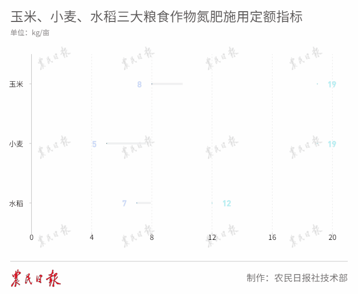 水稻的氮肥安全用量應(yīng)該為7-12kg/畝,小麥5-19 kg/畝,玉米8-19 kg/畝。