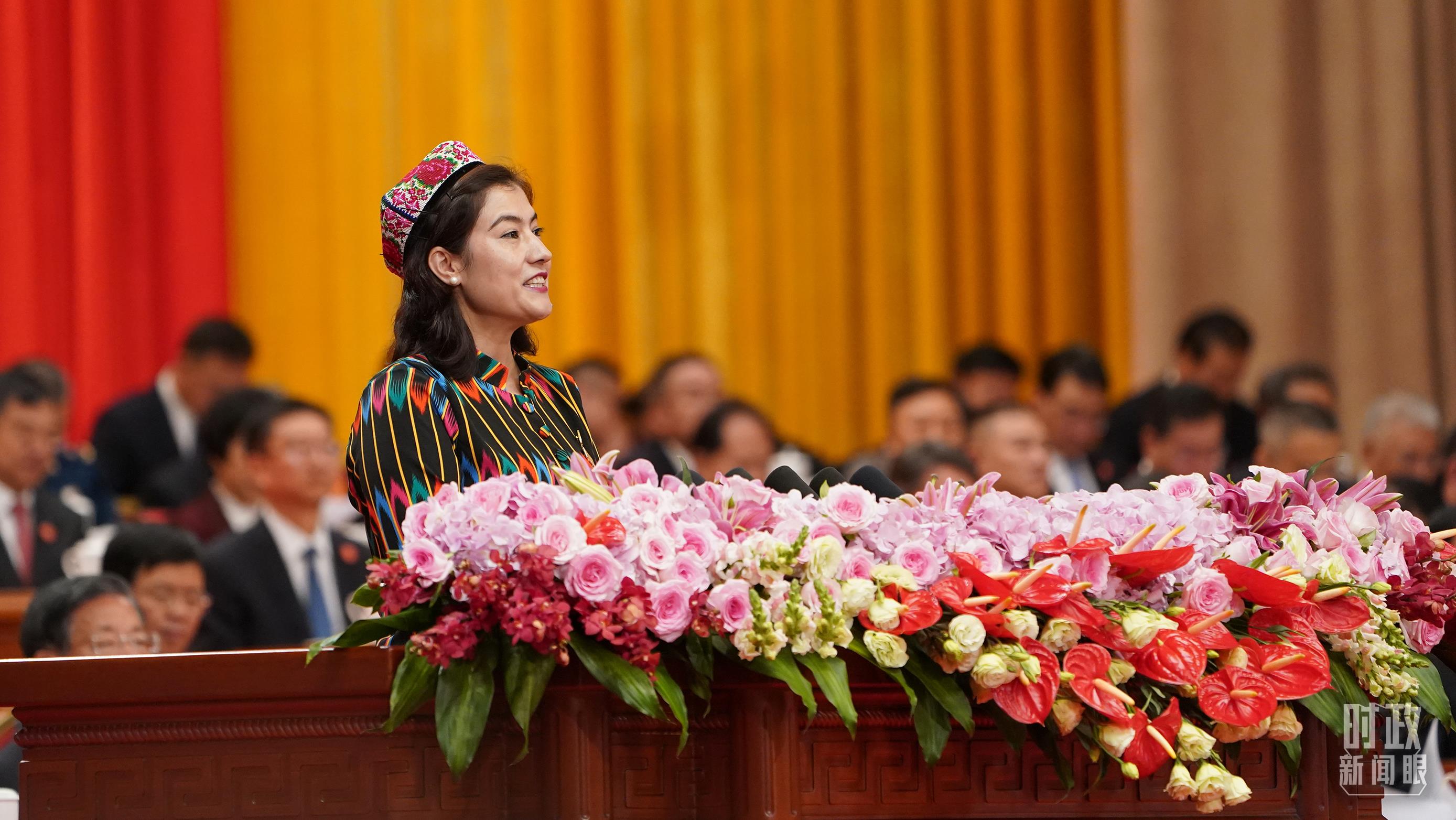 喀什地區(qū)巴楚縣童夢幼兒園園長艾米拉古麗·阿不都作為維吾爾族群眾代表發(fā)言。她曾見證了自己所在的幼兒園由低矮的土坯房變成標(biāo)準(zhǔn)化幼兒園,成為鄉(xiāng)村最漂亮的建筑。