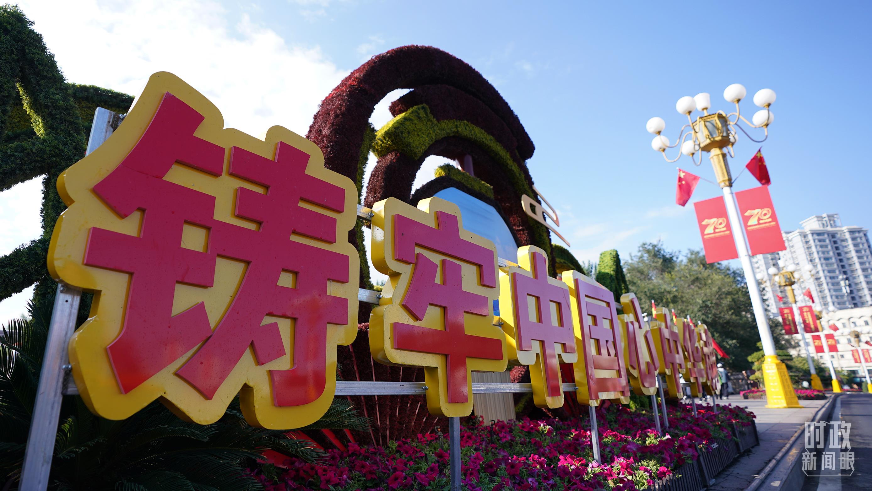 △烏魯木齊街頭的花壇。(總臺記者李晉拍攝)