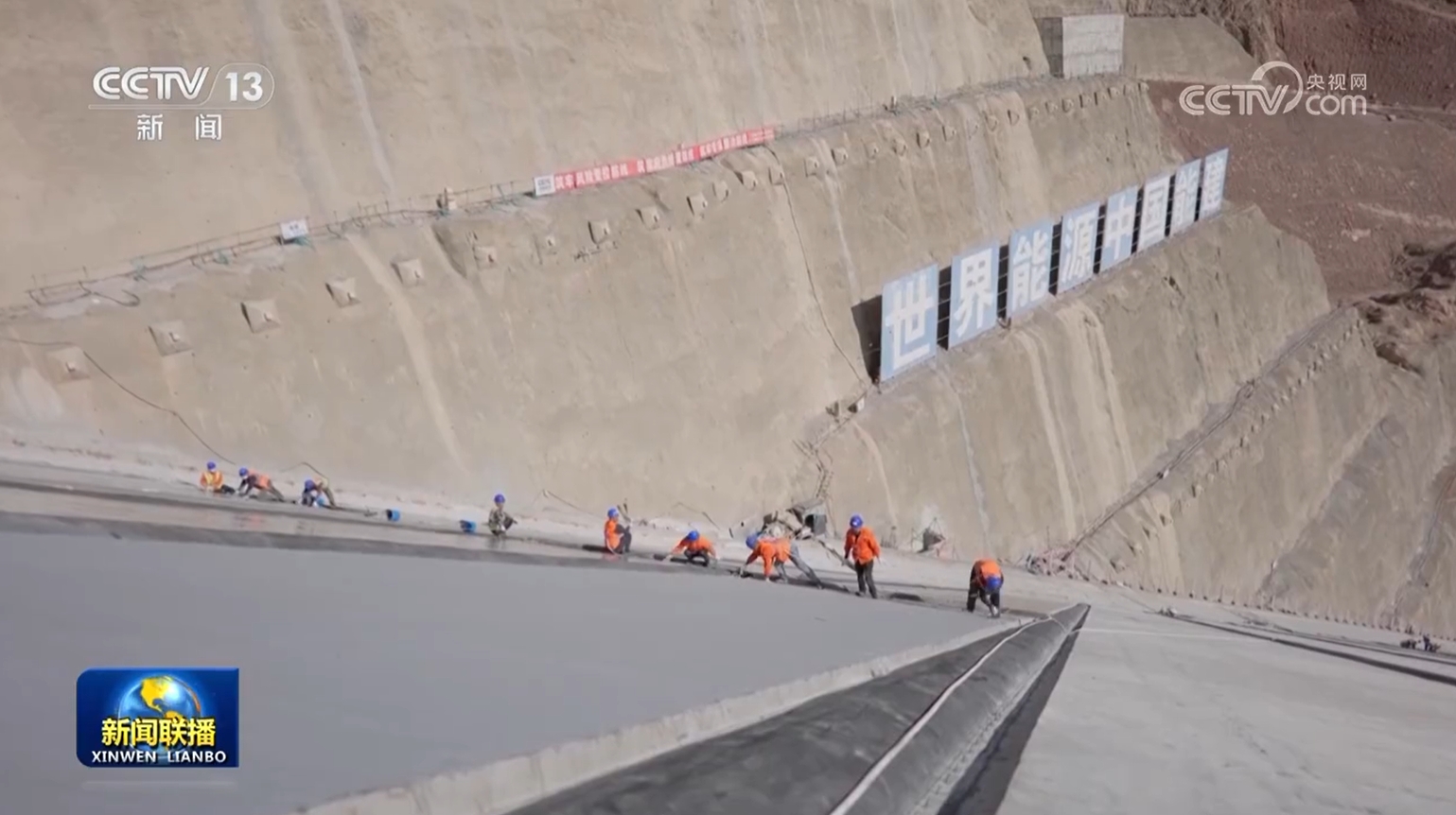 新疆大石峽水利樞紐工程現(xiàn)場(chǎng),工人們?cè)谙喈?dāng)于80層樓高的混凝土石壩上作業(yè)。這項(xiàng)民生工程建成后,年生產(chǎn)清潔電能可滿足65萬戶家庭一年的用電需求。