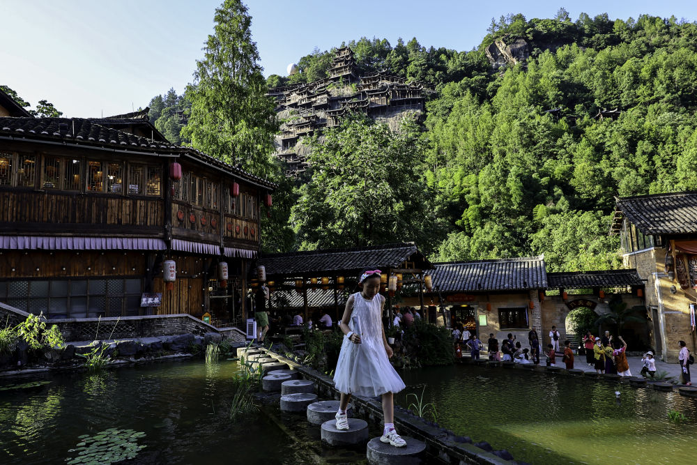 2025年7月11日,游客在位于江西省上饒市望仙鄉(xiāng)的望仙谷景區(qū)游覽。近年來,望仙谷景區(qū)因其獨(dú)特的“仙俠世界”景觀火爆出圈,吸引大批游客來此觀光。景區(qū)2024年接待游客310萬人次,全年實(shí)現(xiàn)旅游收入5.28億元,同時(shí)顯著帶動(dòng)周邊鄉(xiāng)鎮(zhèn)的食、住、行、娛等行業(yè)發(fā)展。望仙谷景區(qū)的建設(shè)運(yùn)營(yíng)促進(jìn)了村民返鄉(xiāng)和能人進(jìn)鄉(xiāng),提供直接就業(yè)崗位超過2000個(gè),帶動(dòng)周邊就業(yè)3萬余人。