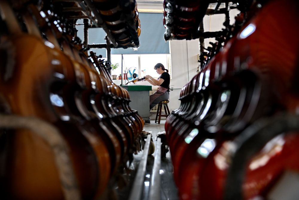 2025年5月28日,河北省武強(qiáng)縣一家樂器生產(chǎn)企業(yè)的工人在制作尤克里里。武強(qiáng)縣樂器產(chǎn)業(yè)歷經(jīng)30余年的發(fā)展,形成擁有超過150家企業(yè)、從業(yè)人員萬余人的產(chǎn)業(yè)集群,產(chǎn)品覆蓋100多個(gè)品種、400多種規(guī)格。近年來,武強(qiáng)縣依托樂器文化產(chǎn)業(yè)資源,打造集樂器加工、樂器體驗(yàn)、音樂展演和休閑度假等業(yè)態(tài)為一體的周窩音樂小鎮(zhèn),同時(shí)創(chuàng)新“樂器+”鄉(xiāng)村振興模式,持續(xù)增強(qiáng)樂器產(chǎn)業(yè)的富民強(qiáng)縣作用。2024年武強(qiáng)縣樂器產(chǎn)業(yè)實(shí)現(xiàn)營(yíng)收23.8億元,旅游收入超10億元。