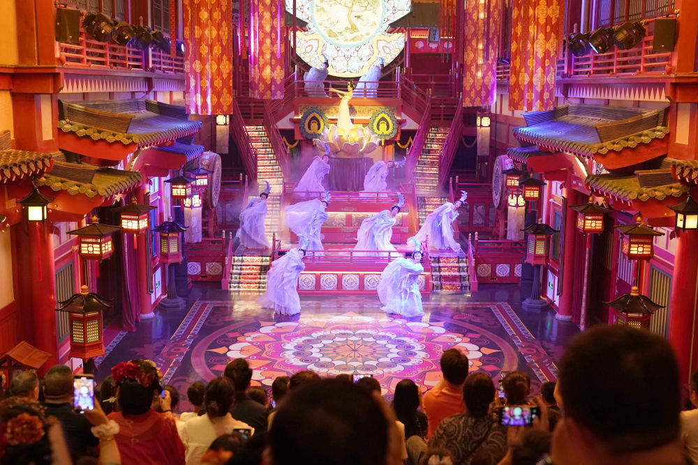 2024年5月19日,游客在西安長(zhǎng)安十二時(shí)辰景區(qū)觀看表演《霓裳羽衣舞》?!伴L(zhǎng)安十二時(shí)辰”主題街區(qū)將唐朝文化與現(xiàn)代旅游相結(jié)合,讓游客仿佛置身于千年前的長(zhǎng)安城。近年來,西安積極推進(jìn)產(chǎn)業(yè)升級(jí)和文旅融合,以中華優(yōu)秀傳統(tǒng)文化創(chuàng)新創(chuàng)造活力助推經(jīng)濟(jì)社會(huì)高質(zhì)量發(fā)展,如大唐不夜城一樣火爆“出圈”的文旅項(xiàng)目層出不窮。
