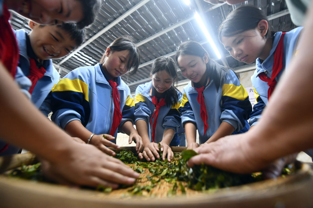 2024年12月3日,學(xué)生們?cè)趶V西梧州市蒼梧縣六堡鎮(zhèn)塘平小學(xué)學(xué)習(xí)制作六堡茶。廣西六堡茶已有1500多年的歷史,其制作工藝被列入第四批國(guó)家級(jí)非物質(zhì)文化遺產(chǎn)代表性項(xiàng)目名錄。近年來,廣西圍繞打造千億元茶產(chǎn)業(yè)發(fā)展目標(biāo),深入實(shí)施綠色高效茶園建設(shè)、品牌提升和營(yíng)銷體系建設(shè)、產(chǎn)業(yè)融合和茶文化提升等多項(xiàng)工程,形成了以六堡茶為引擎,早春茶等特色優(yōu)勢(shì)茶協(xié)同發(fā)展的產(chǎn)業(yè)格局,茶產(chǎn)業(yè)煥發(fā)勃勃生機(jī)。六堡茶正沿21世紀(jì)海上絲綢之路運(yùn)達(dá)八方,香飄海內(nèi)外。2024年,廣西六堡茶產(chǎn)量達(dá)到4.3萬噸,綜合產(chǎn)值超300億元。