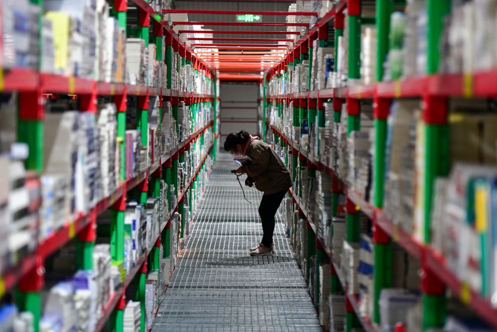 2025年2月19日,工作人員在泰安新聞出版小鎮(zhèn)圖書倉(cāng)庫(kù)內(nèi)整理書籍。近年來,山東省泰安市立足出版印刷產(chǎn)業(yè)優(yōu)勢(shì),打造泰山新聞出版小鎮(zhèn),通過拉長(zhǎng)壯大產(chǎn)業(yè)鏈,推動(dòng)產(chǎn)業(yè)集聚發(fā)展,構(gòu)建龍頭引領(lǐng)、鏈條延伸、集群共進(jìn)的出版印刷產(chǎn)業(yè)“雁陣”。目前,小鎮(zhèn)已吸引60余家企業(yè)入駐,涵蓋編輯出版、印刷發(fā)行、倉(cāng)儲(chǔ)物流、版權(quán)交易、研學(xué)旅游等產(chǎn)業(yè)鏈各環(huán)節(jié)。