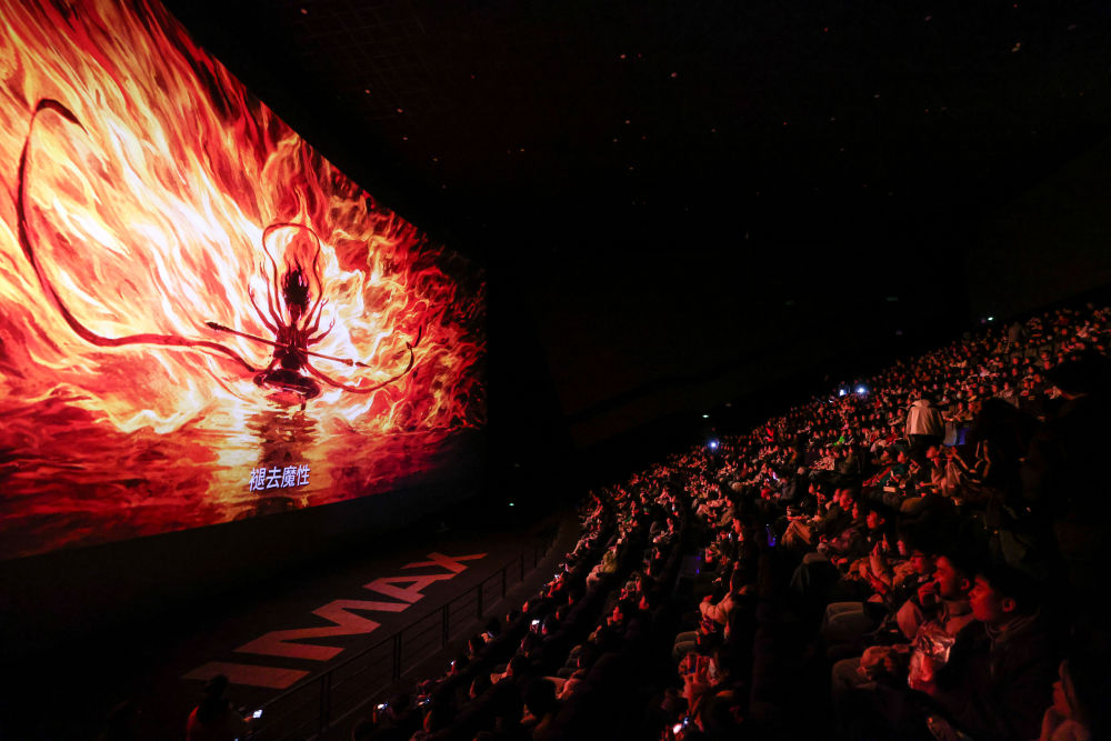2025年2月25日,觀眾在貴陽越界影城IMAX影廳內(nèi)觀看電影《哪吒之魔童鬧?!?。動(dòng)畫電影《哪吒之魔童鬧?!纷?月29日上映后票房一路高歌猛進(jìn),僅用8天便登頂中國(guó)影史票房榜,隨后成為全球單一市場(chǎng)票房冠軍、全球動(dòng)畫電影票房冠軍。2025年以來,國(guó)家電影局等相繼啟動(dòng)“跟著電影品美食”“跟著電影去旅游”“中國(guó)電影消費(fèi)年”活動(dòng),充分發(fā)揮電影對(duì)提振消費(fèi)的積極作用;各地文旅部門等通過發(fā)布觀影消費(fèi)券、舉辦主題活動(dòng)等形式推動(dòng)影旅融合,發(fā)展票根經(jīng)濟(jì)。