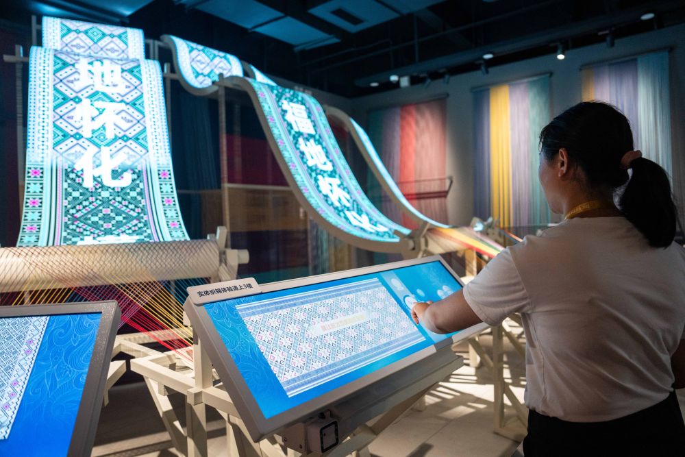 2025年9月16日,游客在湖南省懷化市五溪非遺園體驗(yàn)數(shù)字化織錦。五溪非遺園于2025年5月正式開園,包含非遺廣場(chǎng)、數(shù)字體驗(yàn)空間和研學(xué)工坊三大板塊,運(yùn)用VR、AR、全息投影等技術(shù)打造42個(gè)沉浸式非遺體驗(yàn)項(xiàng)目。目前,懷化以五溪非遺園為抓手,推出非遺主題研學(xué)項(xiàng)目、開發(fā)深度互動(dòng)項(xiàng)目,構(gòu)筑特色文化產(chǎn)業(yè)體系,吸引更多人了解、學(xué)習(xí)非遺,讓傳統(tǒng)技藝成為城市發(fā)展的文化動(dòng)力。