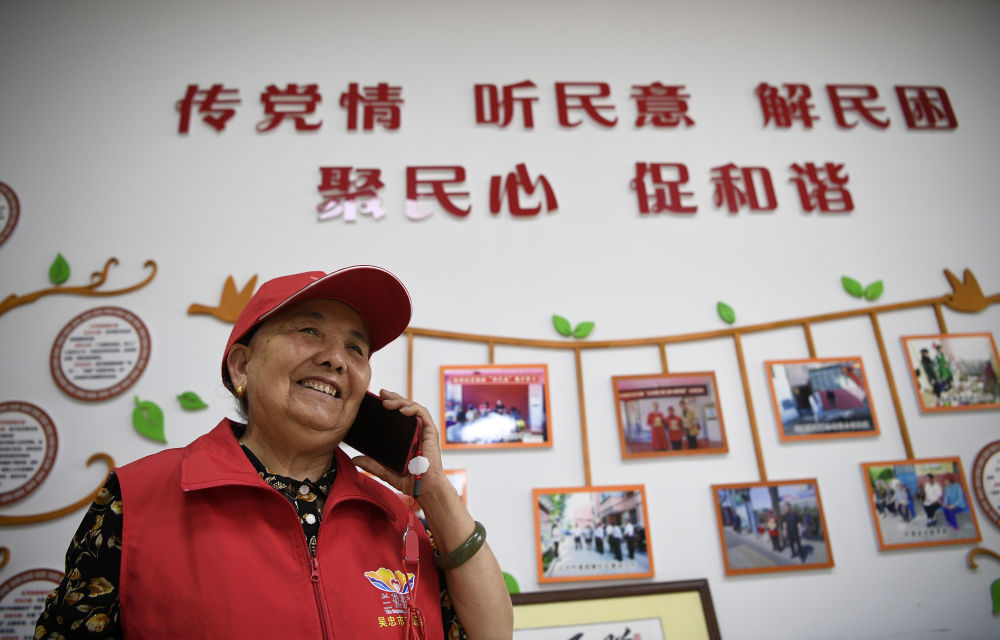 2005年,寧夏吳忠市回族婦女王蘭花從社區(qū)居委會(huì)主任崗位退休后,與6名老同事成立了“王蘭花熱心小組”。她帶領(lǐng)團(tuán)隊(duì)二十年如一日?qǐng)?jiān)持志愿服務(wù),每天奔走在社區(qū)各個(gè)角落,照顧空巢老人、留守兒童,化解矛盾糾紛,幫助解決社區(qū)居民的操心事、煩心事、揪心事,用無私奉獻(xiàn)溫暖著每一個(gè)人的心田,成為社區(qū)志愿服務(wù)“領(lǐng)頭羊”,吸引越來越多的人加入志愿服務(wù)隊(duì)伍。這是2021年6月16日,王蘭花在社區(qū)工作站與居民通電話。