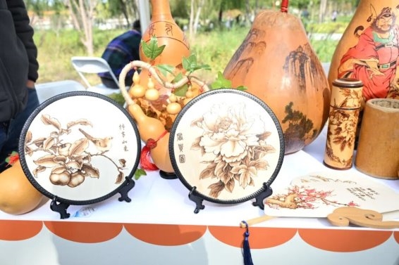 非遺文化體驗(yàn)區(qū)同樣熱鬧非凡?;鹄L葫蘆展示區(qū)觀無虛席,不少家長(zhǎng)帶著孩子親手體驗(yàn)傳統(tǒng)火繪制作工藝。