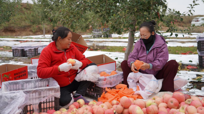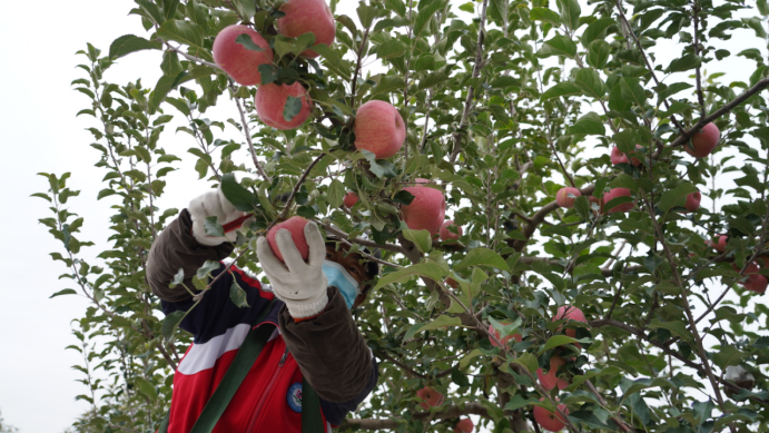 這樣熱熱鬧鬧的蘋果豐收場景,在橫山并非個例。響水鎮(zhèn)劉介明家庭農(nóng)場也迎來了大豐收,一顆顆飽滿的果實壓彎了枝頭,“我的蘋果是含糖量最高的,主要面向榆林地區(qū)銷售,顧客反饋說我的蘋果口感是最好的!”劉介明捧著剛摘下的蘋果,語氣里滿是自豪。
