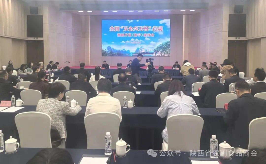 10月24日,全國(guó)“萬(wàn)企興萬(wàn)村”行動(dòng)西部片區(qū)(南寧)座談會(huì)在廣西南寧召開(kāi)。全國(guó)工商聯(lián)黨組成員、副主席李冰出席并講話。廣西壯族自治區(qū)副主席、工商聯(lián)主席眭國(guó)華致辭。陜西省工商聯(lián)副主席、省總商會(huì)副會(huì)長(zhǎng)李瑛,陜西省總商會(huì)副會(huì)長(zhǎng)、西安市工商聯(lián)副主席、省農(nóng)副食品商會(huì)會(huì)長(zhǎng)雷振龍參加會(huì)議。