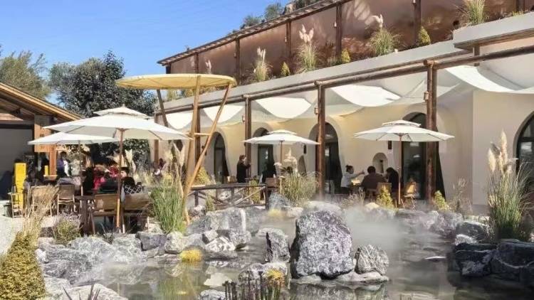 “天氣雖冷,但現(xiàn)場氛圍太燃了!”來自西安的游客李女士表示,一邊是金黃稻浪隨風起伏,一邊是喜歡的歌手深情演唱,腳下是松軟土地,鼻尖縈繞稻香與美食香氣,這樣的體驗格外新奇?;顒蝇F(xiàn)場,露天火鍋長桌宴人氣爆棚,麻辣、菌湯、番茄三種鍋底搭配榆陽本地羊肉、有機蔬菜,還有小米壽司、烤蘋果等創(chuàng)意料理,讓游客大快朵頤??Х认闩c火鍋熱氣交織,陜北特色小吃與潮流美食薈萃,徹底點燃了深秋的消費熱情。