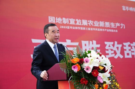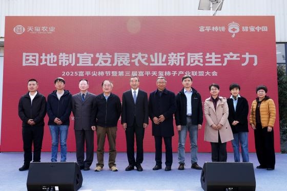 金秋十月,柿果飄香。10月26日上午,“因地制宜發(fā)展農(nóng)業(yè)新質(zhì)生產(chǎn)力 2025富平尖柿節(jié)暨第三屆富平天璽柿子產(chǎn)業(yè)聯(lián)盟大會(huì)”在天璽柿子小鎮(zhèn)盛大開幕。富平縣政協(xié)主席王永麗,縣委常委、宣傳部部長(zhǎng)詹輝,縣人大副主任張三放,副縣長(zhǎng)段冰,縣政協(xié)黨組成員祁娟,縣農(nóng)業(yè)農(nóng)村局、薛鎮(zhèn)、到賢鎮(zhèn)黨委政府相關(guān)負(fù)責(zé)同志;來(lái)自中國(guó)柿子、蘋果及獼猴桃領(lǐng)域科學(xué)家,中國(guó)園藝學(xué)會(huì)柿分會(huì)榮譽(yù)理事長(zhǎng)、華中農(nóng)業(yè)大學(xué)教授羅正榮,中國(guó)農(nóng)業(yè)大學(xué)園藝學(xué)院教授王憶,西北農(nóng)林科技大學(xué)園藝學(xué)院副院長(zhǎng)關(guān)長(zhǎng)飛、食品科學(xué)與工程學(xué)院副教授劉斌,西北農(nóng)林科技大學(xué)研究員、陜西省現(xiàn)代獼猴桃產(chǎn)業(yè)技術(shù)體系首席科學(xué)家劉占德,西北農(nóng)大博士、眉縣獼猴桃試驗(yàn)站育種專家劉艷飛,富平縣果業(yè)發(fā)展中心正高級(jí)工程師、“富平柿餅制作技藝”代表性傳承人馮鎖牢;陜西省農(nóng)副食品商會(huì)常務(wù)副會(huì)長(zhǎng)齊培培,中國(guó)果品流通協(xié)會(huì)副會(huì)長(zhǎng)、大方集團(tuán)天璽農(nóng)業(yè)董事長(zhǎng)王方勝,總裁任月莉,來(lái)自全國(guó)各地的柿子產(chǎn)業(yè)專家、經(jīng)銷商代表以及富平天璽柿子產(chǎn)業(yè)聯(lián)盟成員等200余人出席本次活動(dòng),共話中國(guó)柿子產(chǎn)業(yè)現(xiàn)代化發(fā)展之路。