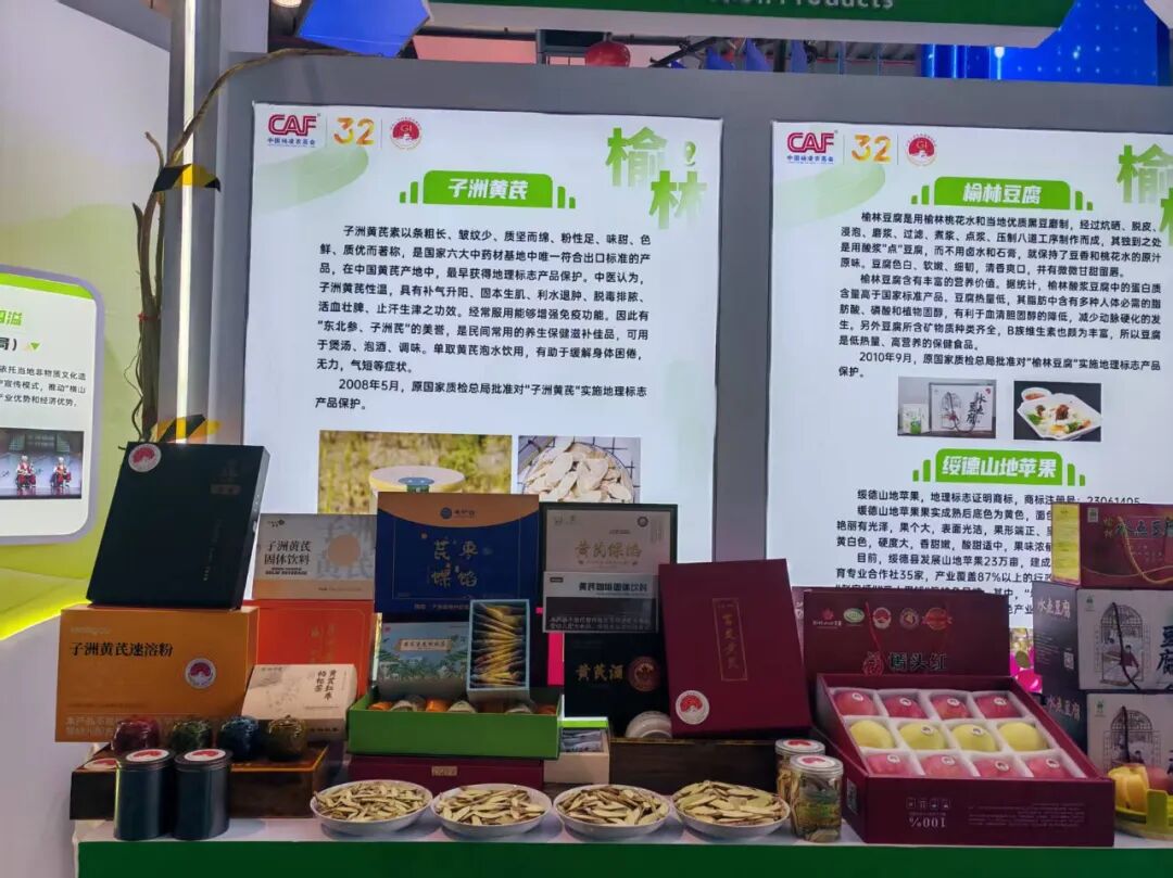 子洲黃芪展位位于陜西省知識產(chǎn)權(quán)局地理標(biāo)志產(chǎn)品集中展區(qū),會上展示了黃芪的條、桿、片等初始產(chǎn)品,以及2023年11月9日國家衛(wèi)健委、國家市場監(jiān)管總局將子洲黃芪列入食藥物質(zhì)目錄后,開發(fā)的黃芪代用茶、黃芪馃餡、黃芪固體飲料、黃芪咖啡、黃芪速溶粉、黃芪化妝品等系列產(chǎn)品。通過系統(tǒng)陳列與專業(yè)講解,全面呈現(xiàn)了子洲黃芪的優(yōu)異品質(zhì)與產(chǎn)業(yè)成果,吸引了眾多嘉賓客商駐足咨詢與洽談。