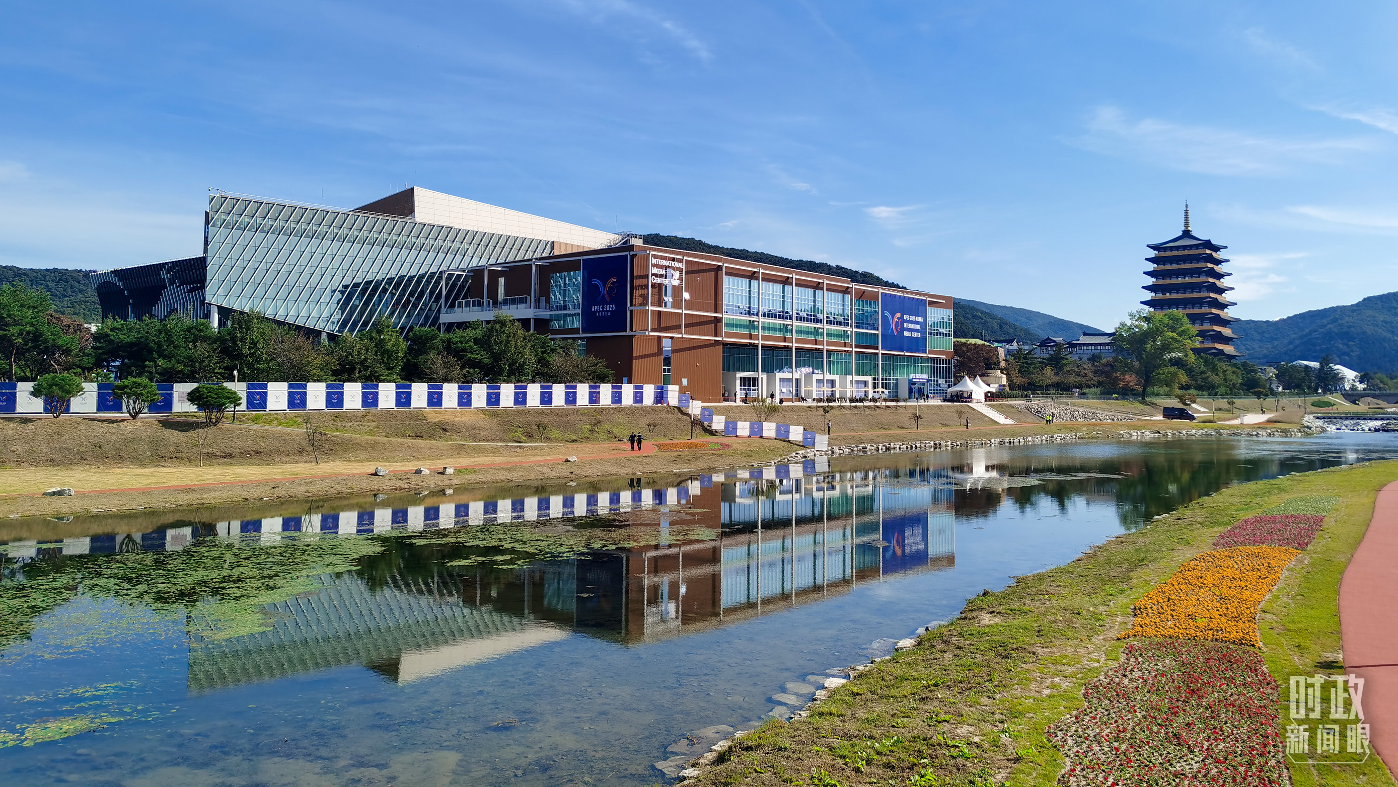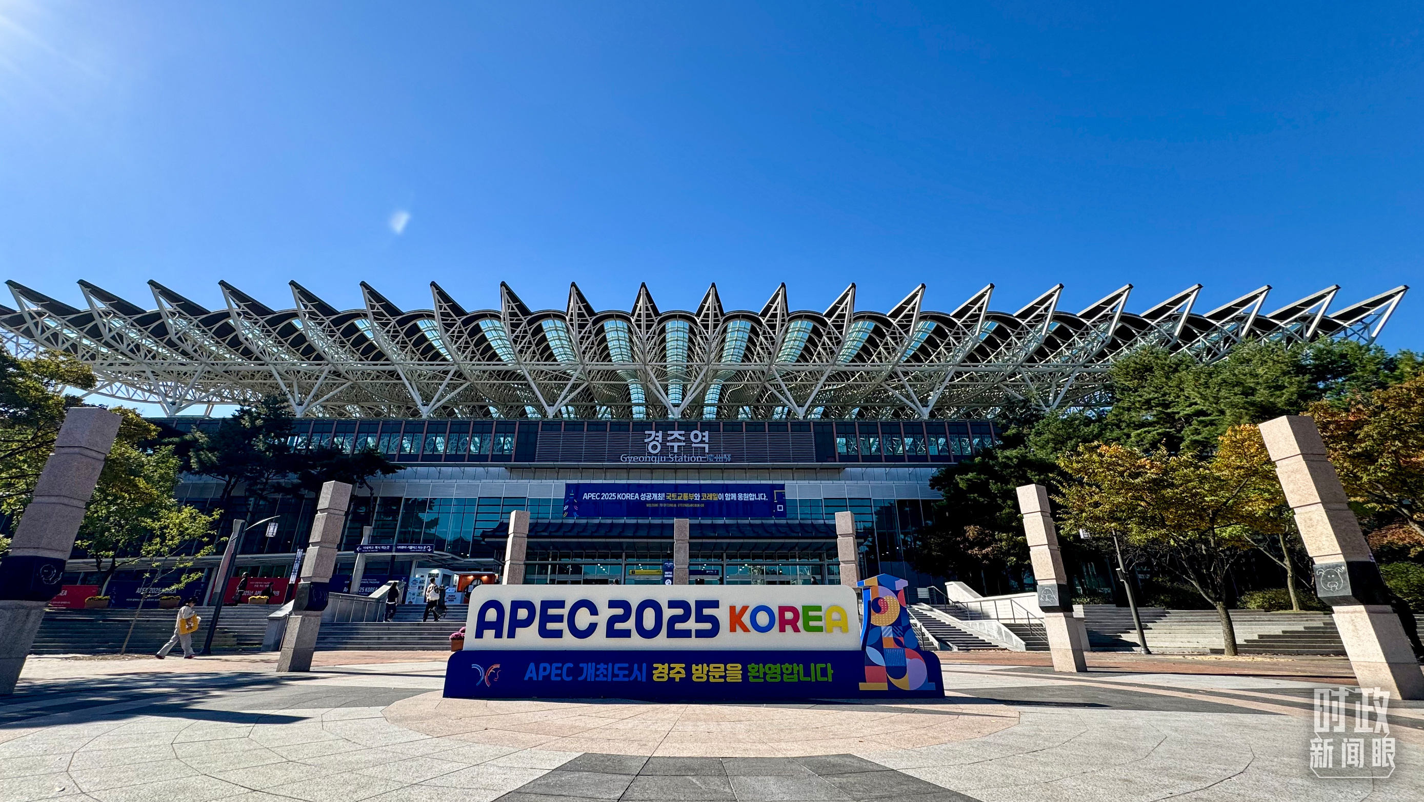 △慶州和白會議中心外。(總臺央視記者范凱拍攝)