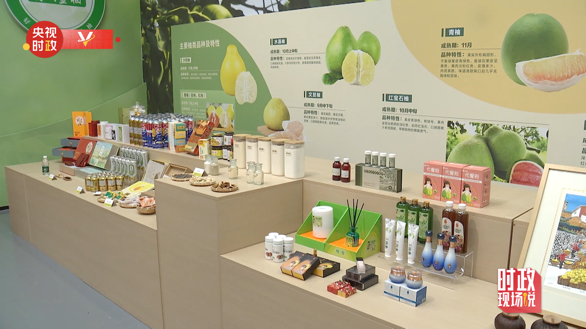 基地內(nèi)的金柚科技智慧展廳陳列著柚子護(hù)膚品、飲料、文創(chuàng)等產(chǎn)品,濃縮著當(dāng)?shù)囟嗄陙碓诜N植標(biāo)準(zhǔn)化、產(chǎn)業(yè)鏈條化、銷售多元化等方面蓄勢發(fā)力,推動(dòng)品質(zhì)做優(yōu)、品牌做大的生動(dòng)實(shí)踐。