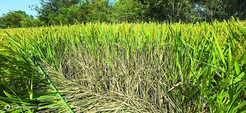 發(fā)生紋枯病的水稻田。揚(yáng)州大學(xué)供圖