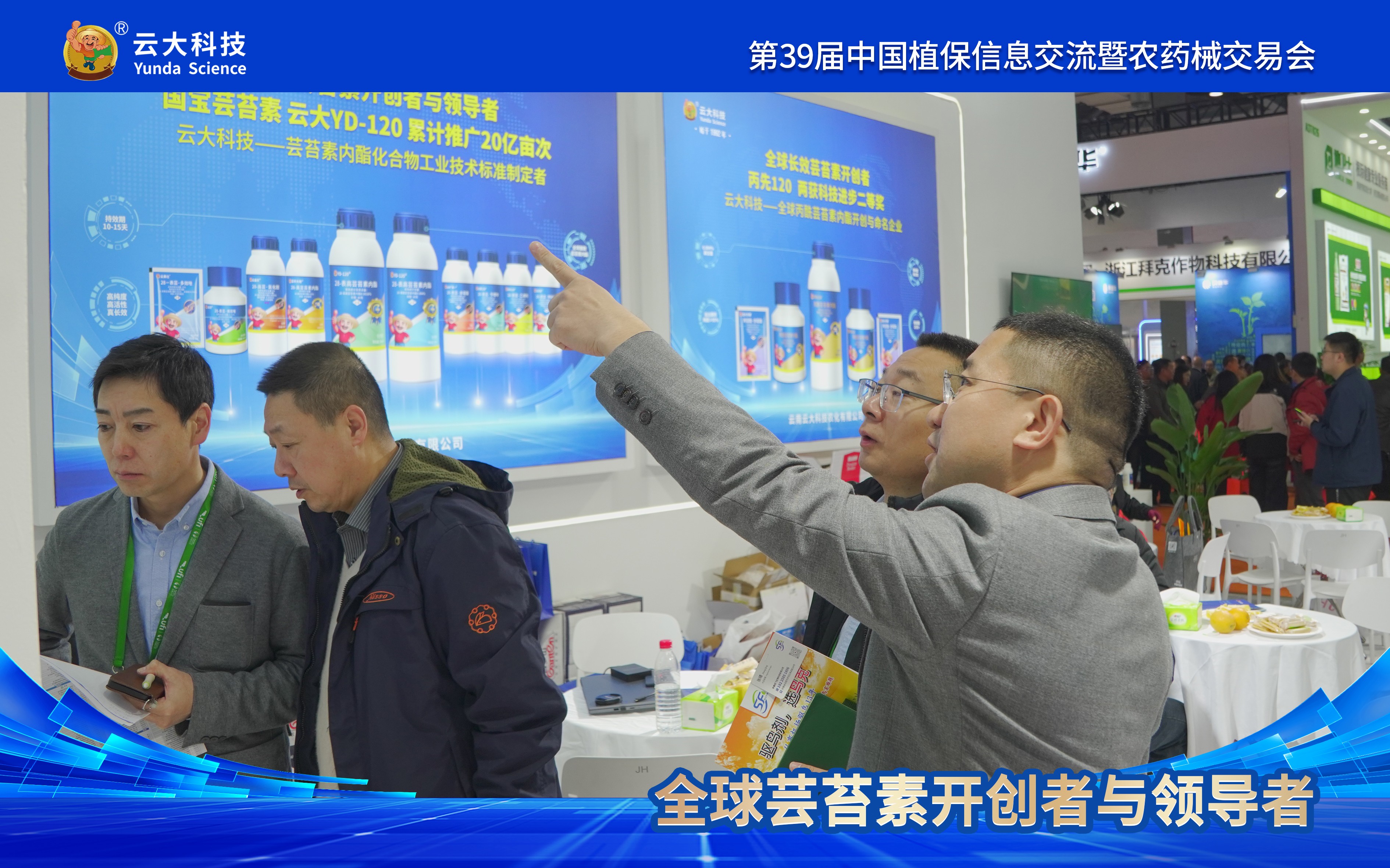 本次展會(huì)上,云大科技重磅呈現(xiàn)植調(diào)劑、植調(diào)藥肥、特種營養(yǎng)三大核心產(chǎn)品線及多款明星單品及方案,全方位覆蓋作物全生長周期的植調(diào)與營養(yǎng)需求。其中長效蕓苔素系列堪稱全場焦點(diǎn),吸引眾多參觀者駐足咨詢。升級(jí)版YD-120將持效期延長至10-15天,讓作物調(diào)控效果翻倍持久,YD-120在中國市場已累計(jì)銷售20億畝次;作為第二代蕓苔素標(biāo)桿的丙先120,持效期長達(dá)20-25天,精準(zhǔn)覆蓋作物全生育關(guān)鍵期,今年恰逢丙先120上市25周年,云大科技丙酰蕓苔素內(nèi)酯兩獲科技進(jìn)步二等獎(jiǎng),更成為展會(huì)現(xiàn)場備受矚目的熱門亮點(diǎn)。