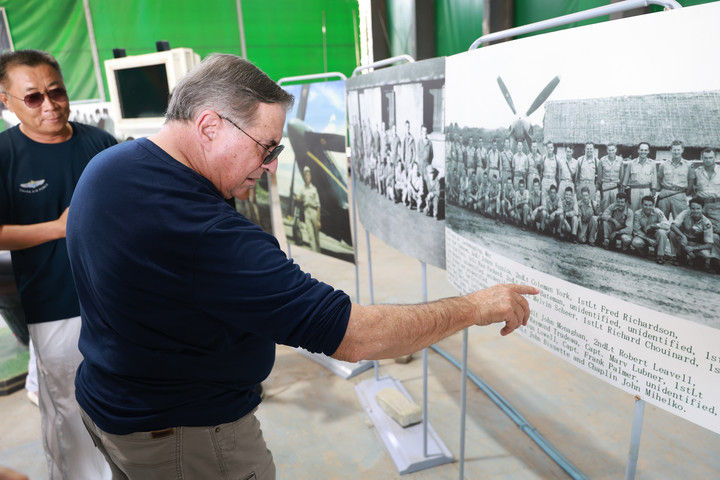 2025年7月16日,美中航空遺產基金會主席杰夫·格林在貴州黃平舊州機場查看飛虎隊資料照片??箲?zhàn)時期,舊州機場主要承擔飛機加油、彈藥補充和維修任務。常駐于此的美國飛虎隊戰(zhàn)機頻頻在該機場起降,參加了湘西會戰(zhàn)、衡陽保衛(wèi)戰(zhàn)等著名戰(zhàn)役。該機場見證了中美聯(lián)合反抗法西斯的光輝歷史,還為確?!榜劮搴骄€”的順利暢通發(fā)揮了舉足輕重的作用。
