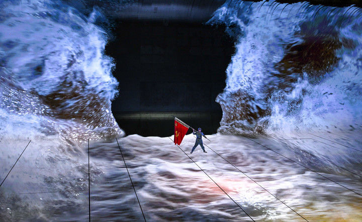 2025年11月15日,演員在貴州長征文化數(shù)字藝術館進行《紅飄帶·偉大遠征》全域行浸數(shù)字演藝。