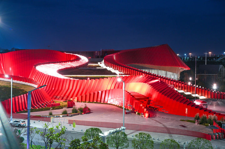 這是2025年11月15日拍攝的貴州長征文化數(shù)字藝術館——“紅飄帶”夜景。