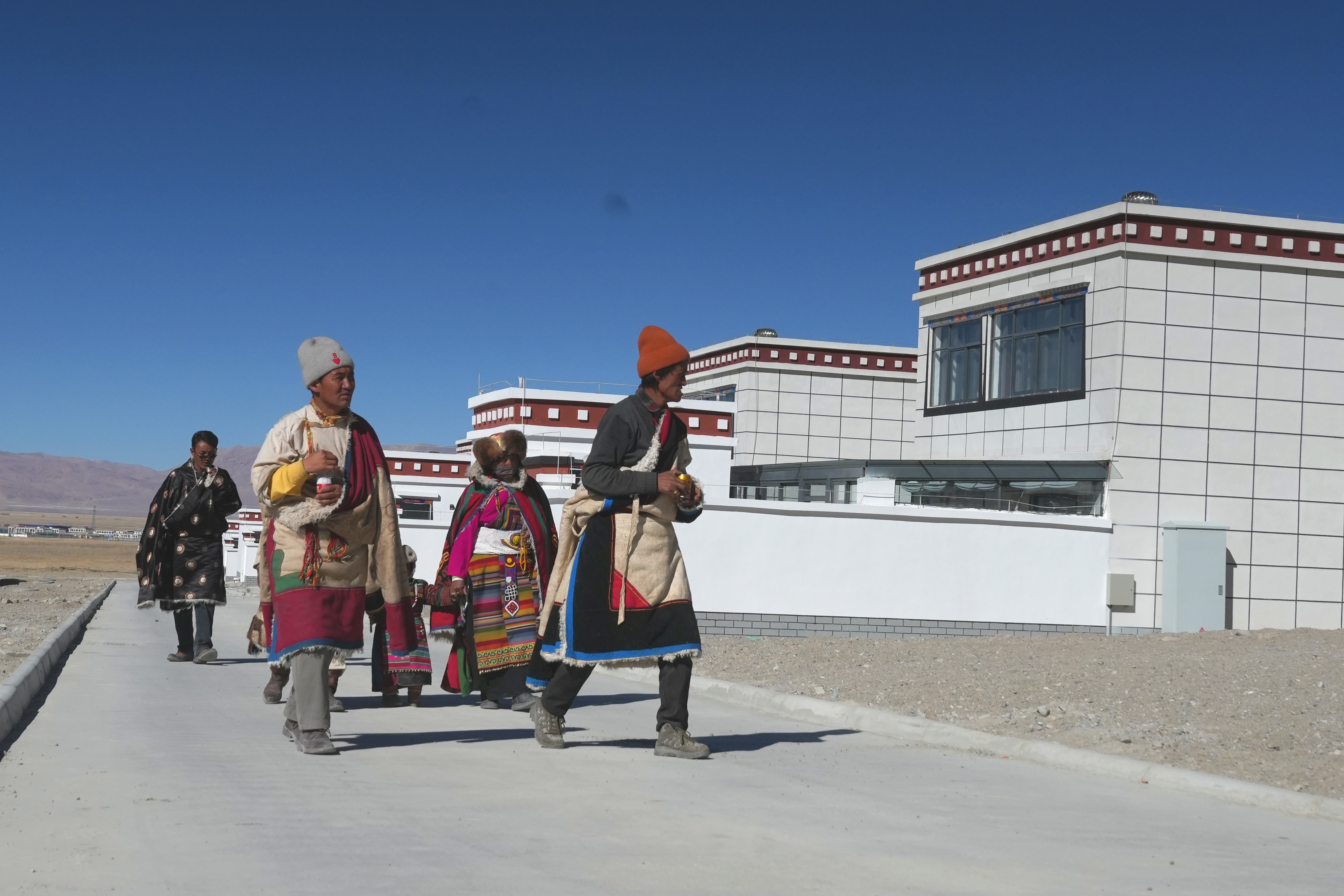 圖為茶措村村民行走在新村平整的水泥路上,仔細(xì)辨認(rèn)、尋找各自的新家,滿是對新生活的期待。改則縣融媒體中心攝