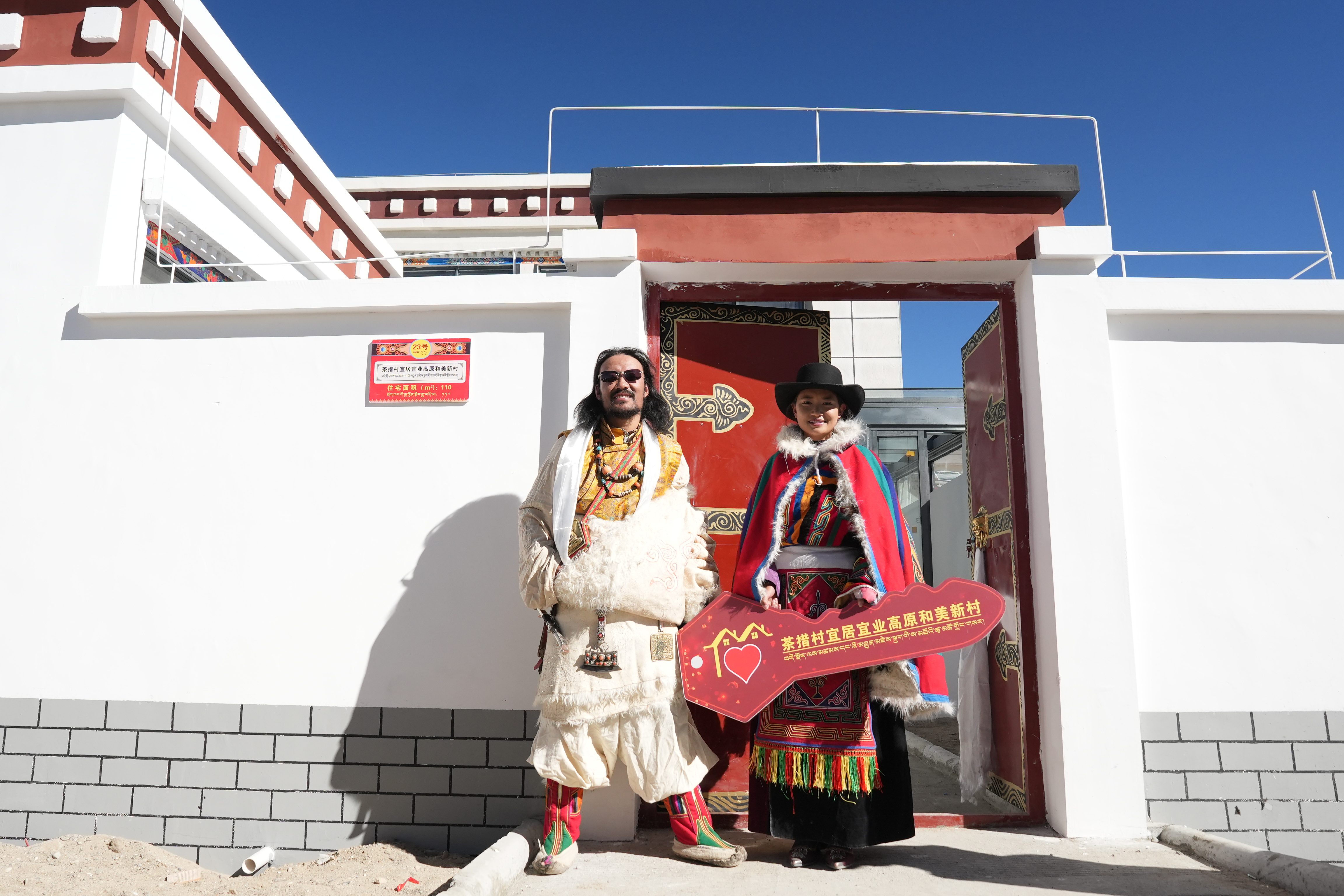 圖為村民身著傳統(tǒng)服飾,手持“茶措村宜居宜業(yè)高原和美新村”鑰匙標(biāo)識牌,臉上洋溢著對新生活的憧憬與喜悅。改則縣融媒體中心攝