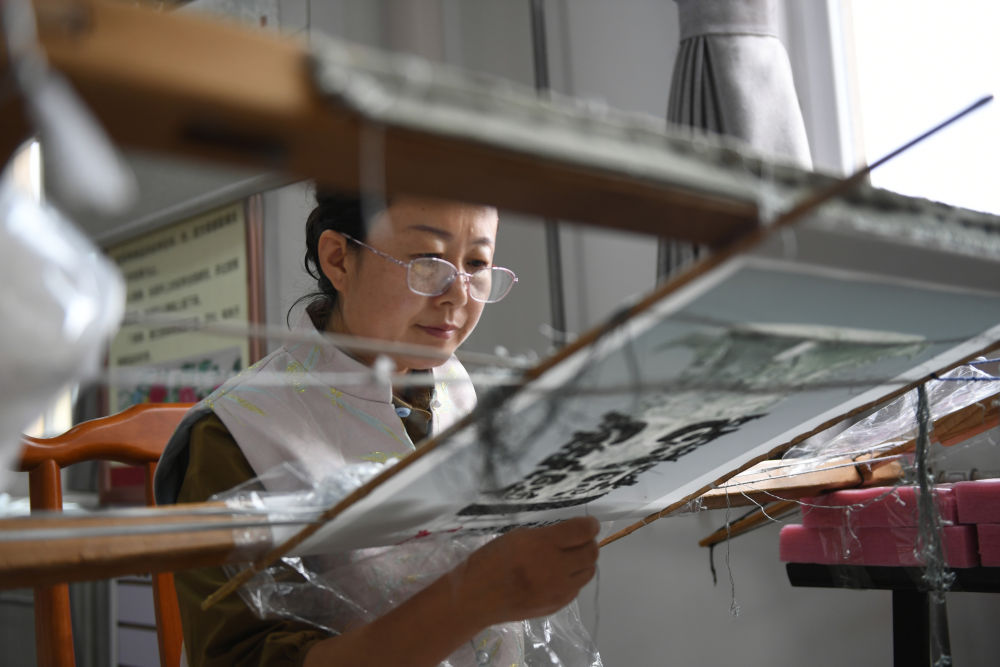 2023年9月8日,陜西千陽(yáng)繡娘王紅燕在西秦刺繡文化產(chǎn)業(yè)園內(nèi)刺繡。陜西千陽(yáng)縣是國(guó)家級(jí)非物質(zhì)文化遺產(chǎn)“西秦刺繡”的重要發(fā)祥地和傳承地。近年來(lái),千陽(yáng)縣將西秦刺繡作為助農(nóng)增收的重要產(chǎn)業(yè),推動(dòng)非遺項(xiàng)目產(chǎn)業(yè)化發(fā)展,助力鄉(xiāng)村振興。