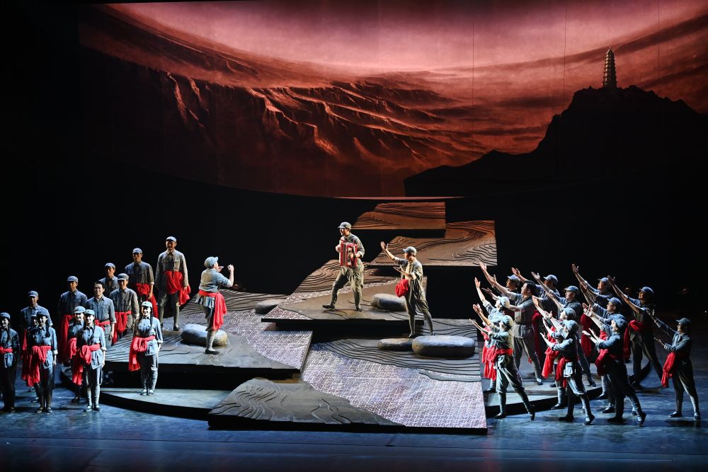 2025年7月29日,演員在陜西延安的金延安文化旅游產(chǎn)業(yè)園區(qū)表演紅色歌舞劇《延安十三年》。近年來(lái),延安市以“傳承紅色基因”為目標(biāo),采用新科技、新理念、新手段,推出多部高質(zhì)量劇目。生動(dòng)感人的故事情節(jié)、富有沖擊力的視聽(tīng)效果、沉浸式的觀賞體驗(yàn)——守正創(chuàng)新的表達(dá)方式讓紅色文化“活起來(lái)”。