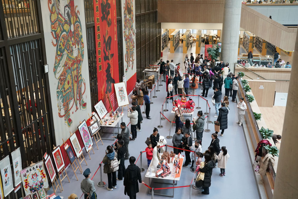 2025年1月1日,觀眾在位于西安的陜西省圖書(shū)館高新館區(qū)內(nèi)參觀一場(chǎng)非遺文化展覽。西安市持續(xù)推出各類主題和形式的公共文化活動(dòng),為市民、游客提供豐富的精神文化生活。