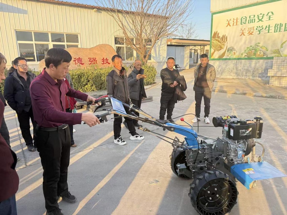 車間內(nèi),各類適配丘陵山區(qū)的小型農(nóng)機具整齊排列,每臺設(shè)備前都圍滿了認(rèn)真學(xué)習(xí)的學(xué)員。