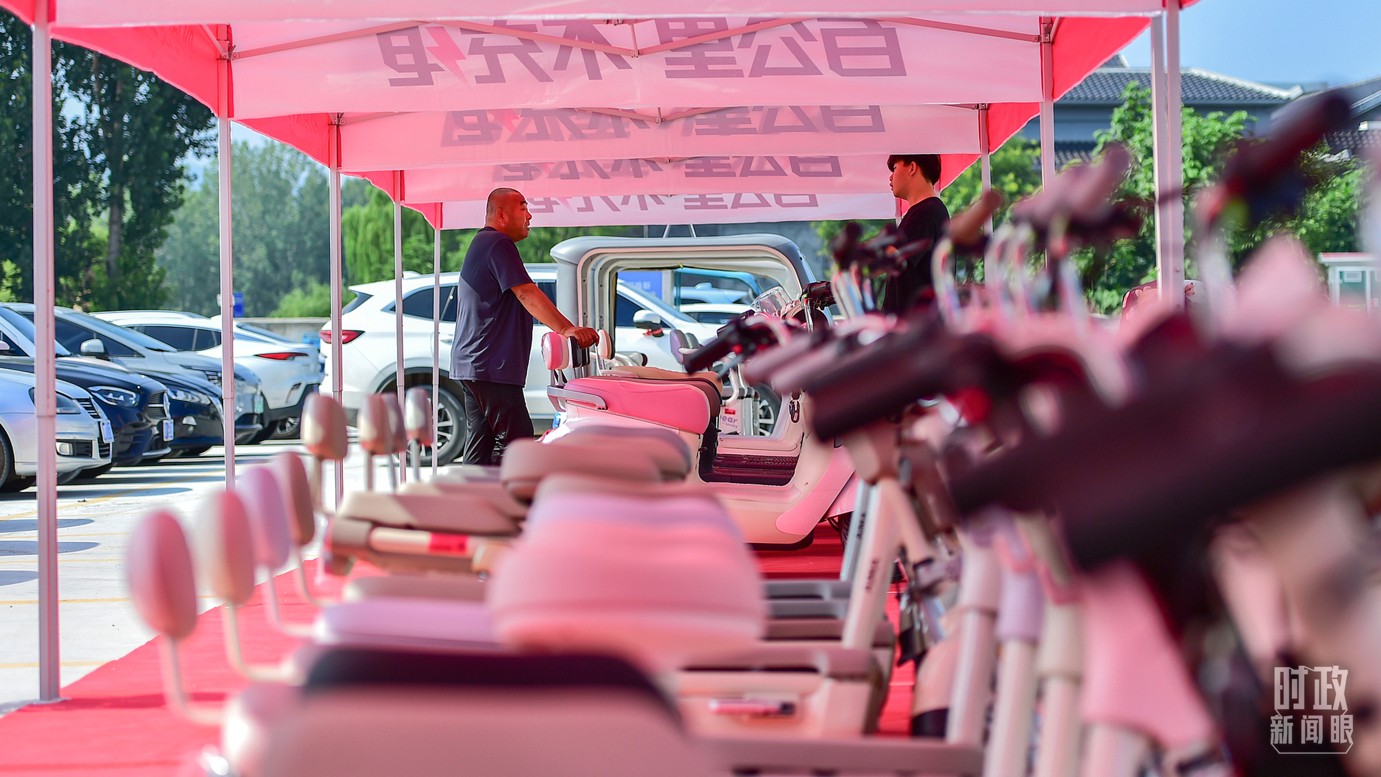 △2025年7月11日,山東濰坊,消費者在“消費品以舊換新進社區(qū)、進鄉(xiāng)村、進企事業(yè)單位”活動現(xiàn)場選購電動自行車。(圖/視覺中國)