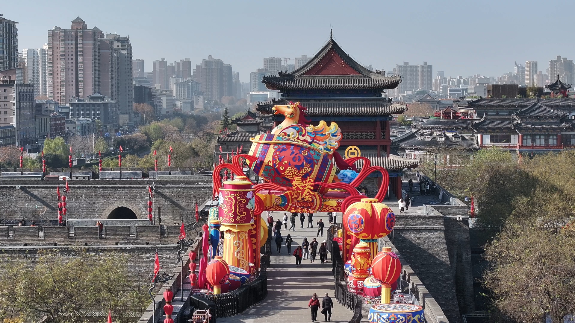 2026“長安燈會(huì)·西安城墻”花燈已初步搭建(央廣網(wǎng)記者 侯凱奇 攝)