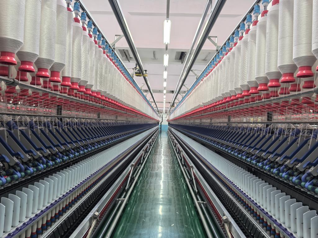 馬口鎮(zhèn)落后的生產(chǎn)模式逐漸成為“過(guò)去式”。今天,穿鎮(zhèn)而過(guò)的105省道旁,紡織企業(yè)密集分布、綿延數(shù)里。隨意走入一家企業(yè),就能看見(jiàn)智能化生產(chǎn)場(chǎng)景:往復(fù)式抓棉機(jī)高效“吞吐”物料、空中流轉(zhuǎn)系統(tǒng)平穩(wěn)串聯(lián)紡紗工序、數(shù)以萬(wàn)計(jì)的紗錠齊聲飛旋,自動(dòng)化生產(chǎn)線上,蓬松柔軟的滌綸短纖歷經(jīng)多道工藝,最終變成一根根柔軟又堅(jiān)韌的縫紉線。
