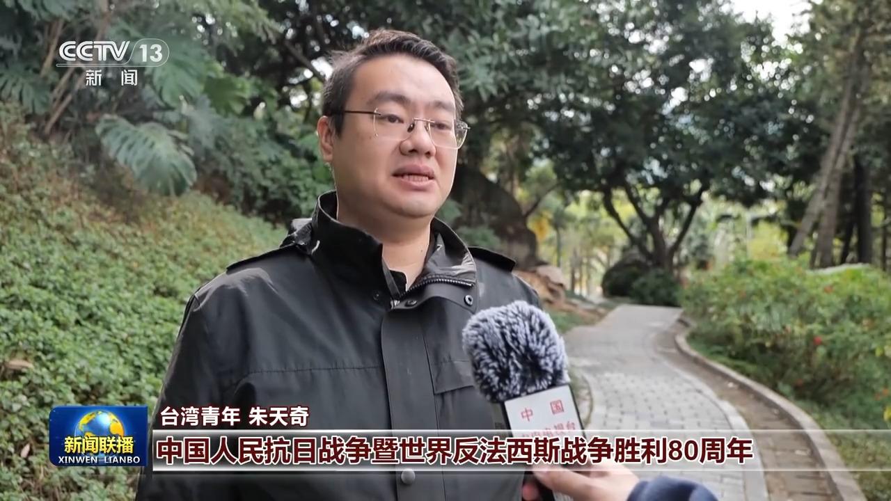 臺灣青年 朱天奇:習近平主席在新年賀詞中說,這一年,令人難忘的是,我們隆重紀念中國人民抗日戰(zhàn)爭暨世界反法西斯戰(zhàn)爭勝利80周年,設立了臺灣光復紀念日,80年前,臺灣擺脫殖民統(tǒng)治重回祖國懷抱,這是全體中華兒女用巨大犧牲換來的勝利成果。兩岸同胞終將同心同德,共同投身于中華民族偉大復興的磅礴偉力之中。