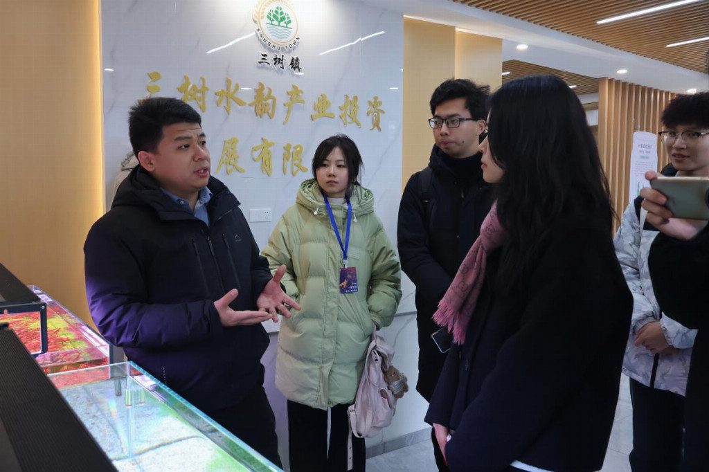 “我們不只是做一個產(chǎn)業(yè),更是圍繞‘一老一小’和村民的實際需求,打造不離鄉(xiāng)、不離土的幸福社區(qū)?!比龢滏?zhèn)黨委書記、天津大學(xué)校友彭程向?qū)嵺`隊介紹道。據(jù)了解,彭程書記一直積極推動本地特色產(chǎn)業(yè)的轉(zhuǎn)型升級。他不僅大力支持企業(yè)與農(nóng)戶進行水草品種的實驗與新品類研發(fā),還邀請相關(guān)領(lǐng)域?qū)<仪皝硖峁┘夹g(shù)指導(dǎo),為當(dāng)?shù)厮莓a(chǎn)業(yè)邁向標(biāo)準(zhǔn)化和品牌化發(fā)展注入了關(guān)鍵動力。 他表示,未來還將繼續(xù)拓展“水族小鎮(zhèn)”產(chǎn)業(yè)鏈,并期待與高校在技術(shù)提升、電商直播、人才培養(yǎng)等方面開展更深入的合作。