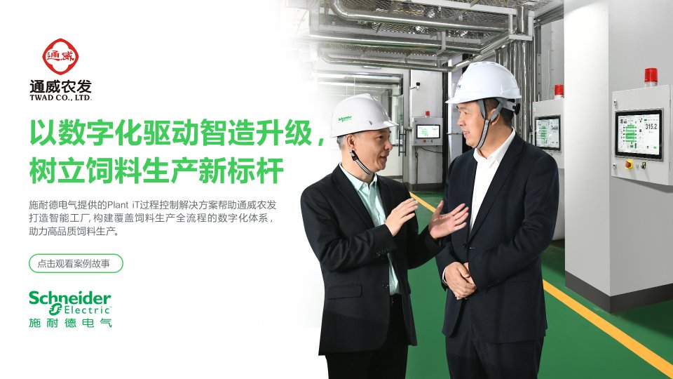 為了幫助通威農(nóng)發(fā)構(gòu)建覆蓋飼料生產(chǎn)全流程的數(shù)字化體系,進(jìn)一步降本增效,施耐德電氣以Plant iT過(guò)程控制解決方案助力其打造飼料行業(yè)的智能工廠,實(shí)現(xiàn)從配方研發(fā)、生產(chǎn)制造到經(jīng)營(yíng)管控的一體化管理,引領(lǐng)飼料行業(yè)從“質(zhì)造”邁向“智造”新生態(tài)。